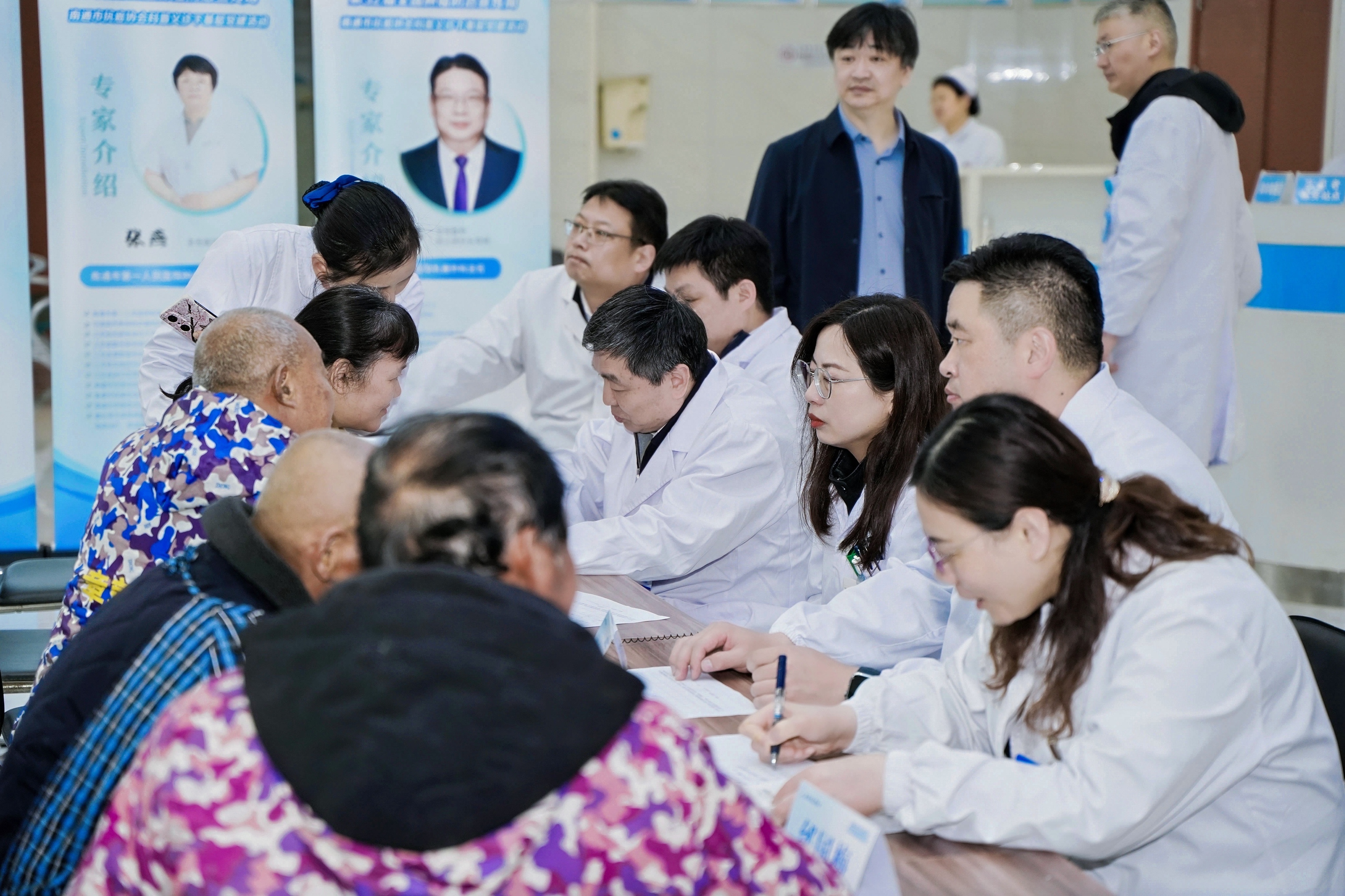 清晨8时30分,海安市肿瘤医院院长季顺民、党支部书记李正东等院领导便早早守候在医院门口,热情迎接南通市抗癌协会专家团队的到来。附近居民得知市里专家前来义诊的消息,早已在门诊大厅排起长队、翘首以盼。