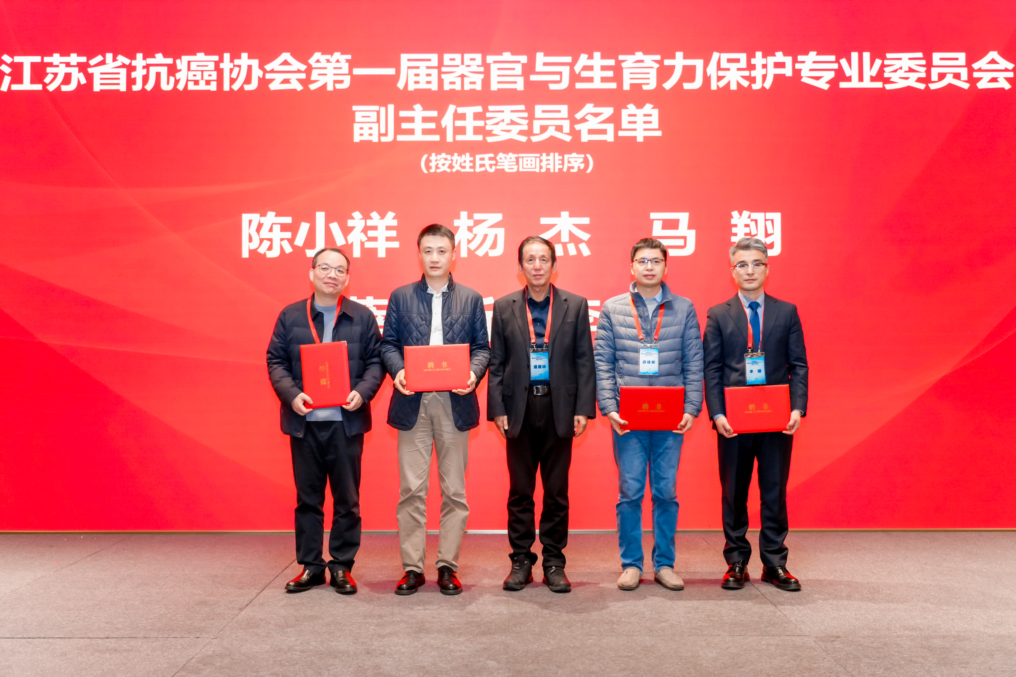 江苏省抗癌协会常务副理事长盛国林为新当选主任委员、副主任委员颁发聘书